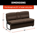 The Thomas Payne Signature RV jackknife sleeper sofa combines luxury and practicality, transitioning quickly and easily from a sofa to a bed. Its innovative design makes it perfect for maximizing space in your RV, offering a 20-inch sofa depth when upright and a 42-inch depth when fully extended for sleeping.