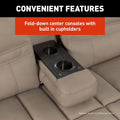 - CONVENIENT FEATURES — A fold-down center console with built-in cupholders and storage underneath the sofa add convenience, making it easy to keep drinks or small items within reach while you lounge