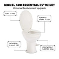 Offering maximum value with minimal weight, the Dometic Model 400 Essential RV Toilet stands out as a smart, reliable choice for lightweight RV builds and replacements. Designed to deliver efficient everyday performance, this ultra-lightweight yet heavy-duty toilet is front-load tested to support twice the weight of leading competitors, providing porcelain-like strength that resists cracking, flexing, and wear from daily use and rough road conditions. Its compact rear profile allows for easy installation in tight spaces, while comfort-focused features and water-efficient operation make it an ideal upgrade or replacement for a wide range of RV applications.